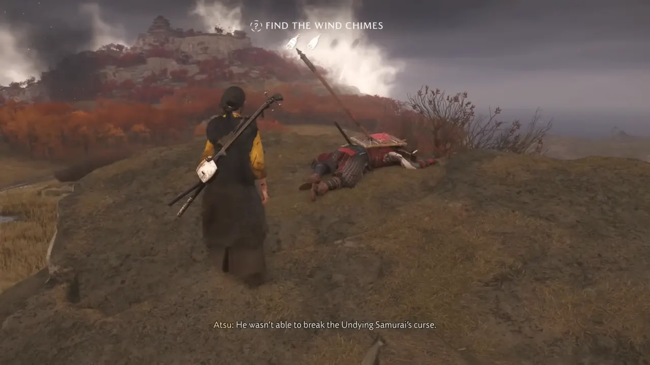 Ugetsu claims the Undying Samurai can only be summoned by ringing four Wind Chimes scattered across the plains. Once you’ve accepted the task, you can track them by holding your chime and following the wind’s direction.