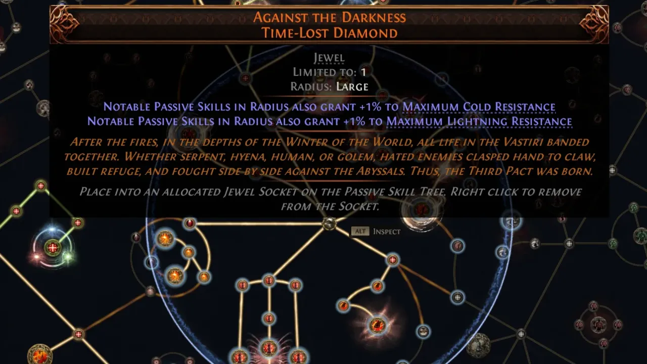 Against the Darkness sets it apart from the usual flurry of Socket fodder you find while mapping. What makes it powerful, though, is how it interacts with the Passive Skill Tree through its Radius-based effects.