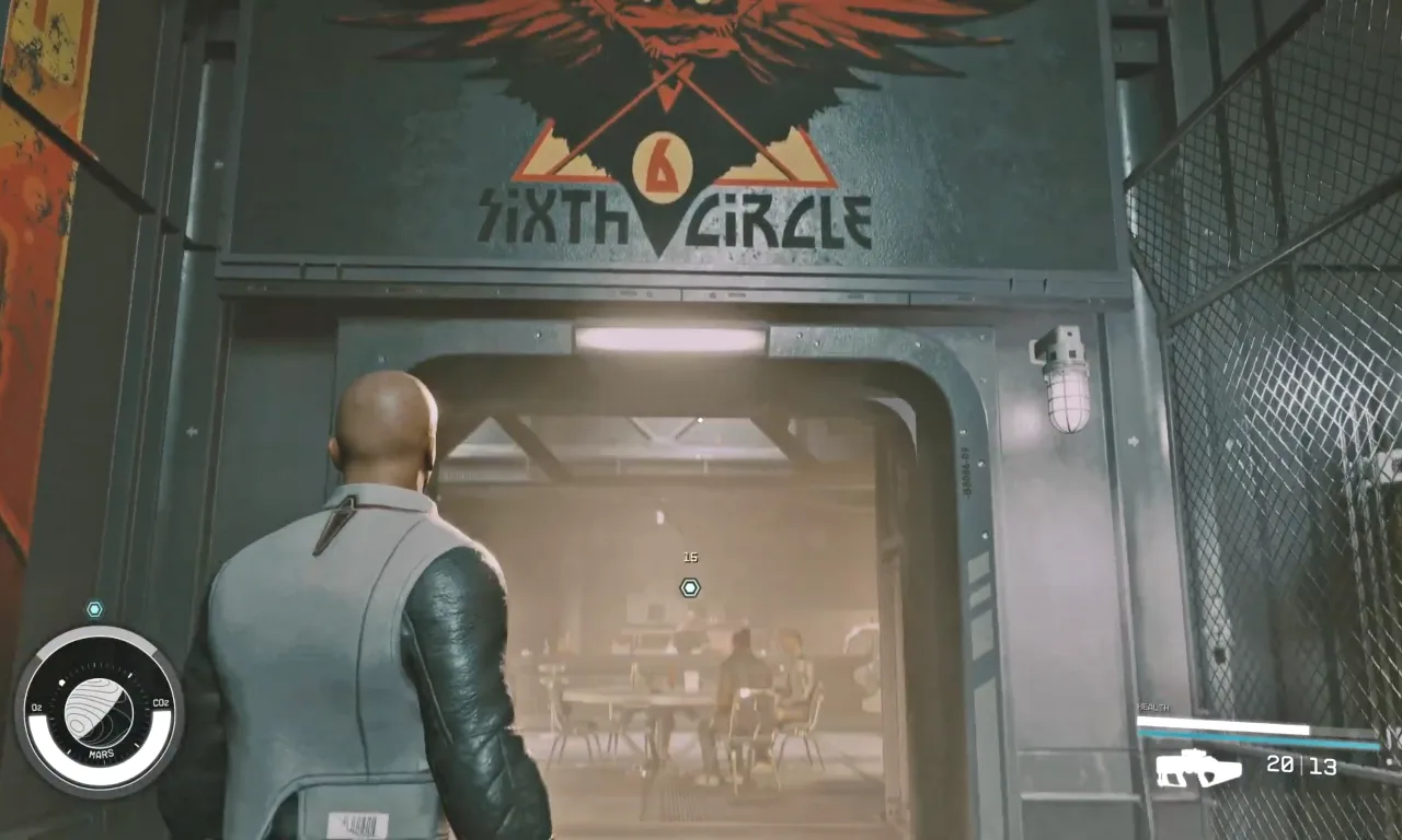 As part of the Delivering Devils quest, you’ll be directed to The Sixth Circle Bar on Mars. Inside the bar, you’ll meet Lou Saavedra, the bartender and a key player in this side hustle. Talking to him will give you the core issue: Percival can’t move forward because he owes the Trade Authority a debt of 21,000 credits. There are three paths to settle this debt:
